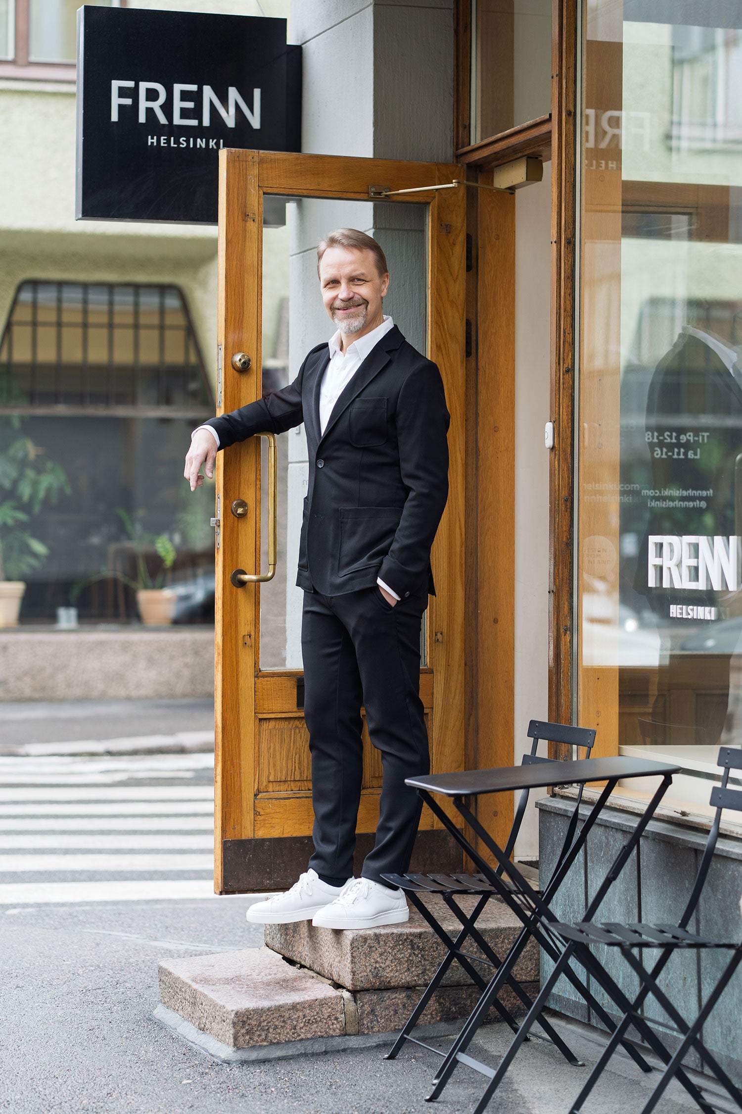 Uutta L/OVER-sarjaa tähdittävä näyttelijä Jani Volanen edusti Cannesin kansainvälisillä TV-sarjafestivaaleilla FRENNin mustassa klassikkopuvussa.